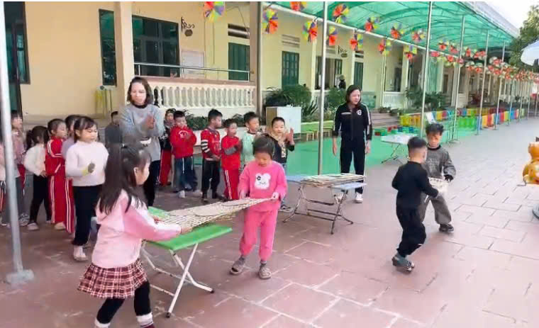 Trò chơi vận động "Phơi bánh đa" của các bé lớp 5T2.