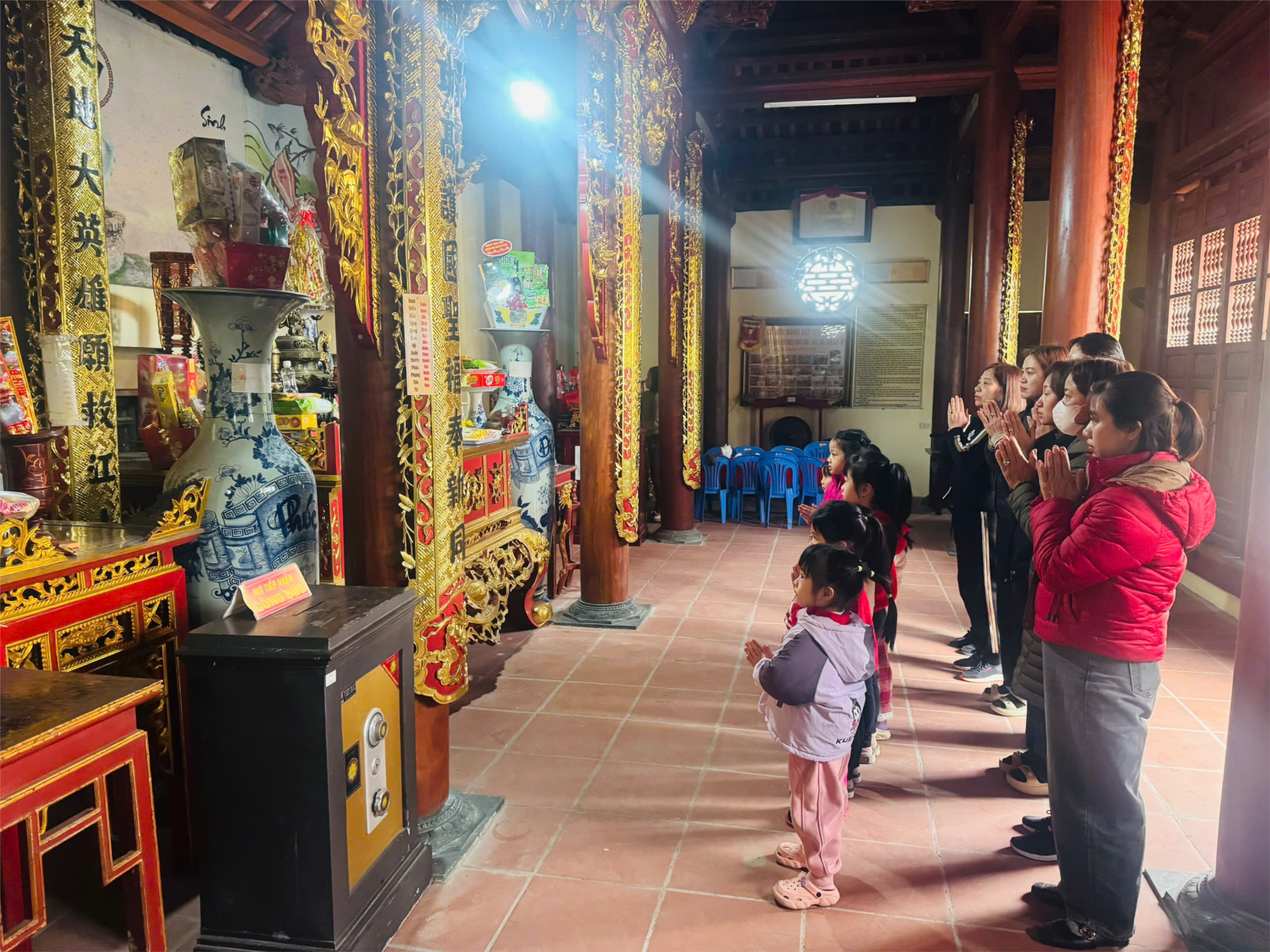 Cô và trò trường MN Lý Học thắp hương tại khu miếu Đông Tỉnh