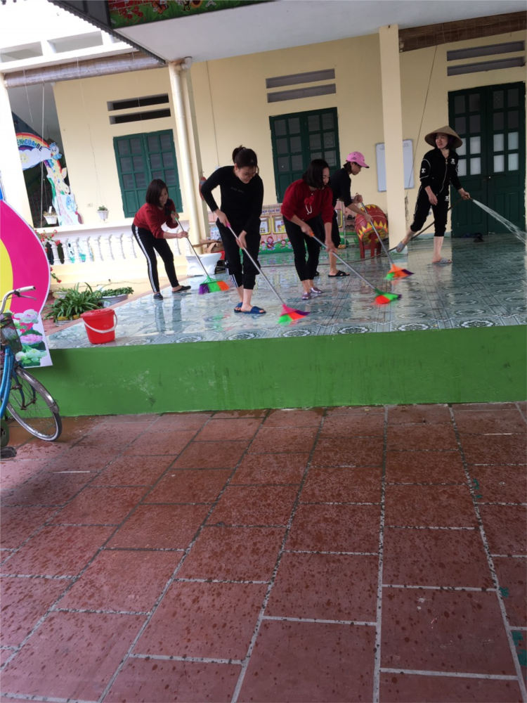 Trường mầm non Lý Học tổ chức lao động, dọn vệ sinh sau cơn bão số 3 Wipha.