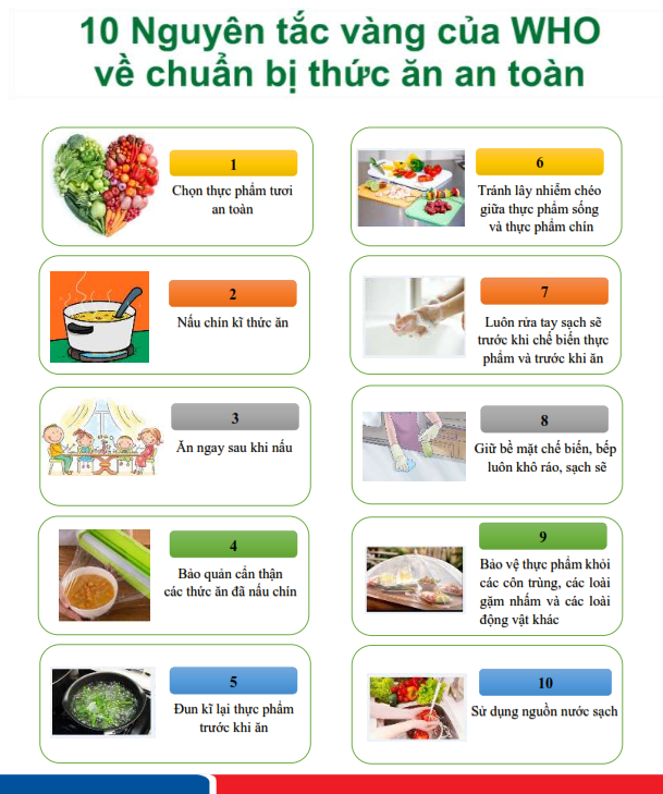 NHÀ TRƯỜNG LUÔN THỰC HIỆN TỐT 10 NGUYÊN TẮC VÀNG VỀ AN TOÀN VỆ SINH THỰC PHẨM