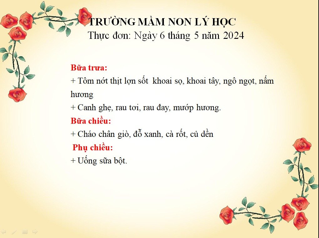 thực đơn ngày 6/5/2024