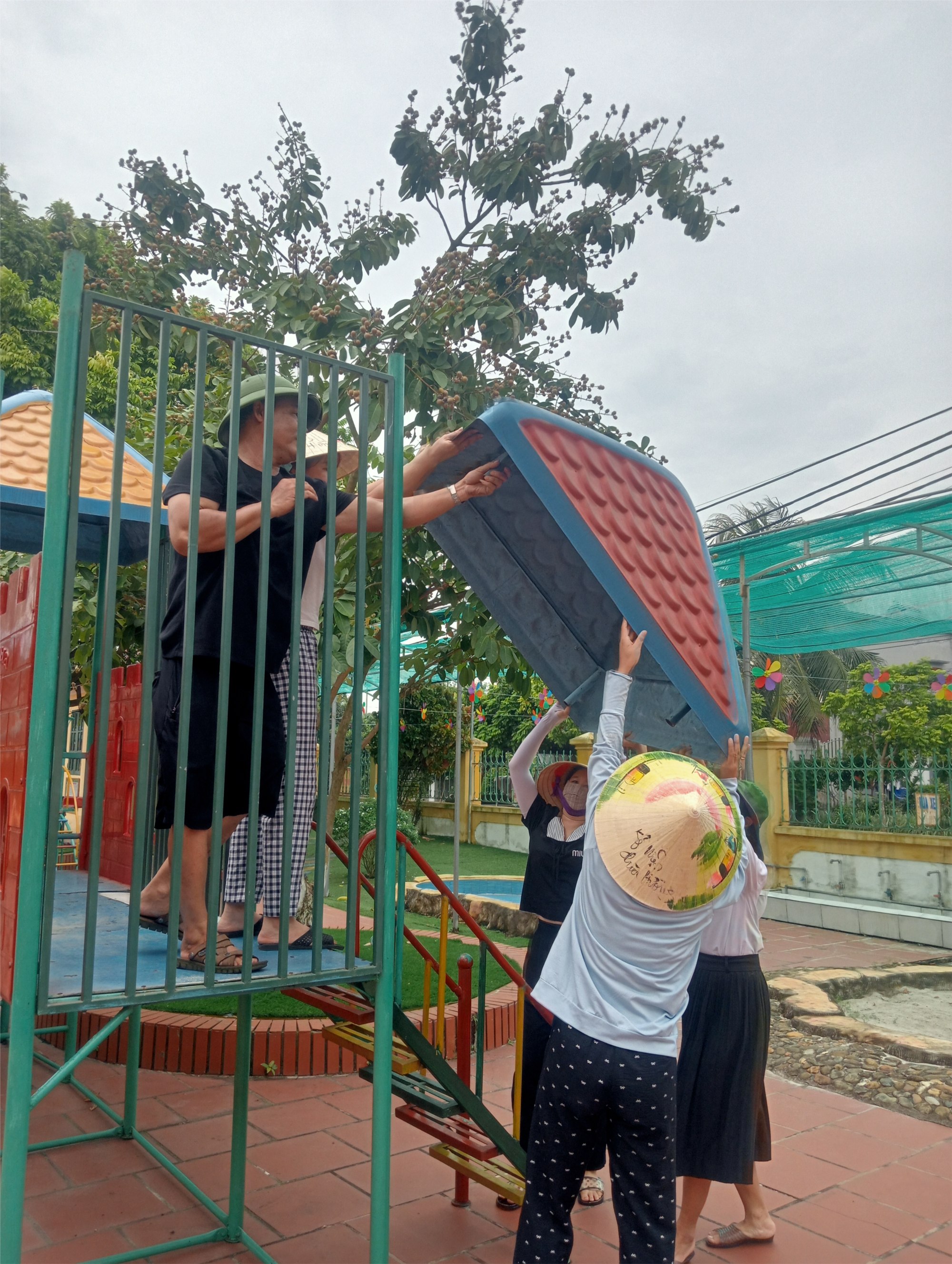 Trường mầm non Lý Học phòng chống cơn bão số 3.