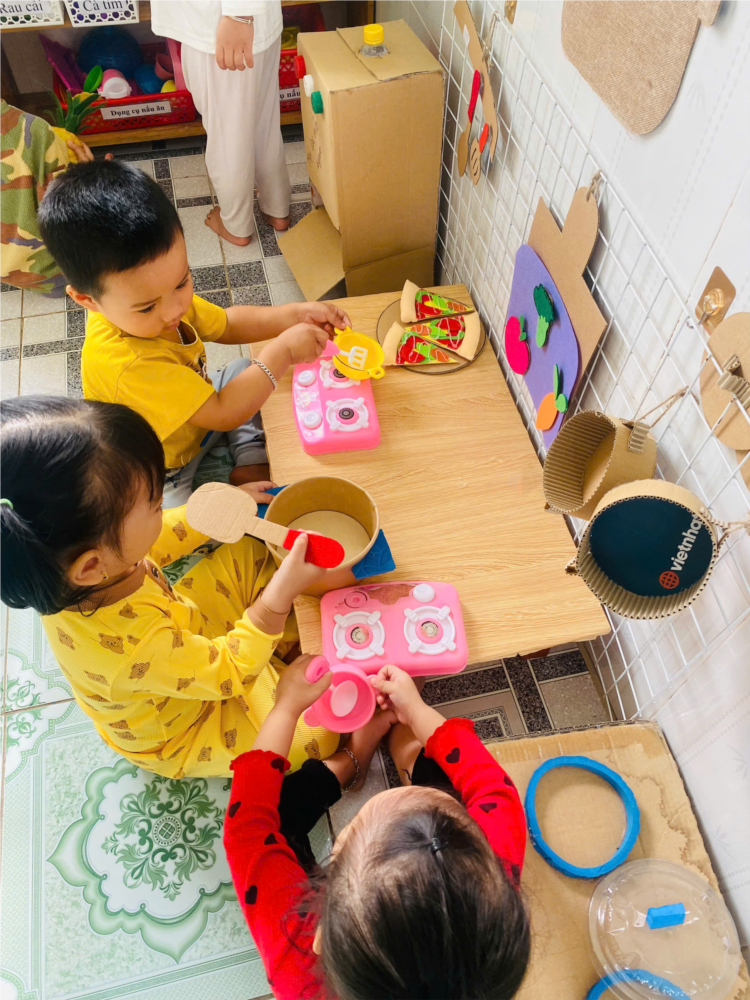 bé tập nấu ăn lớp NT1