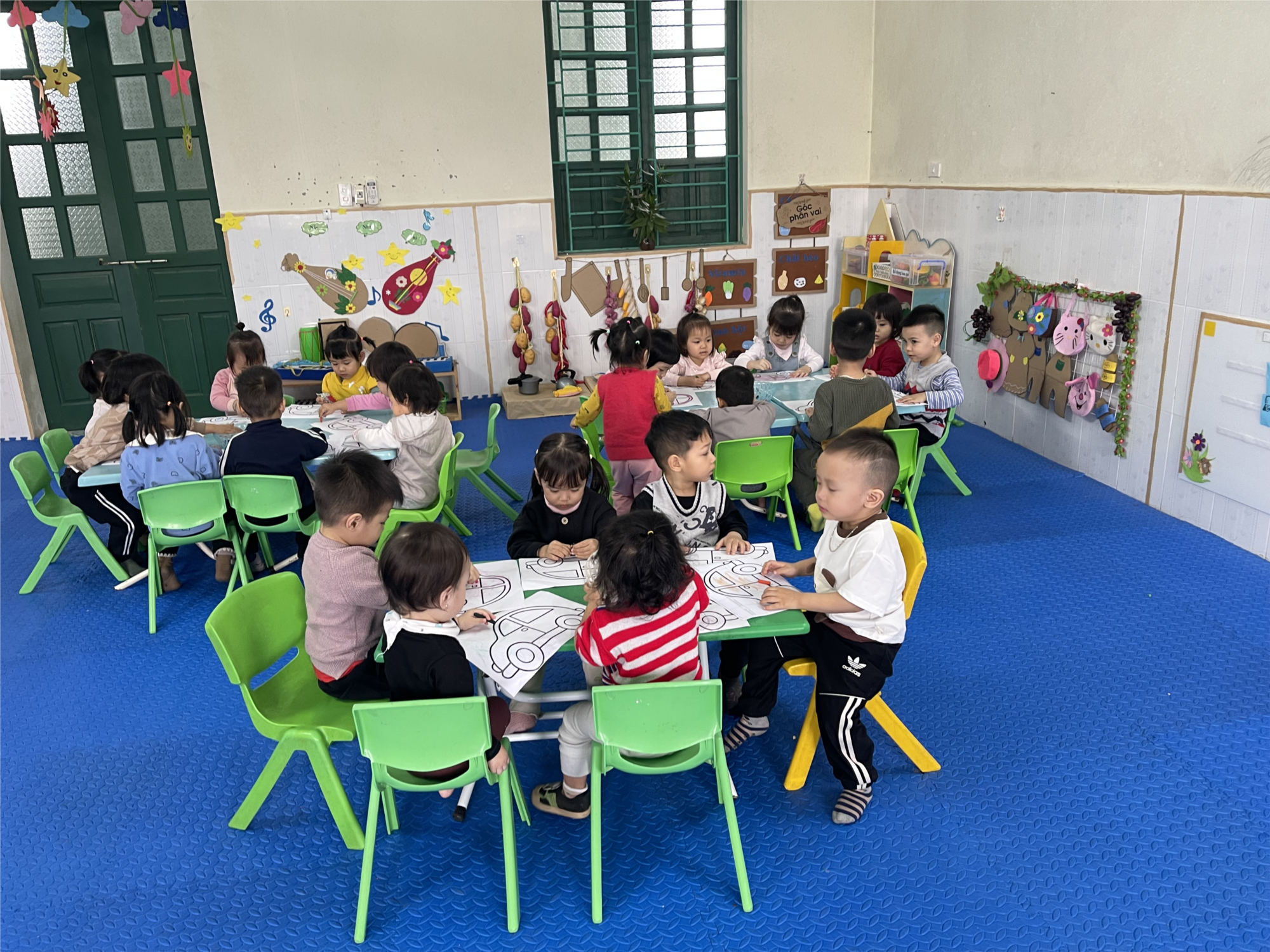 Các bé Nhà Trẻ 2 cùng nhau di màu ô tô